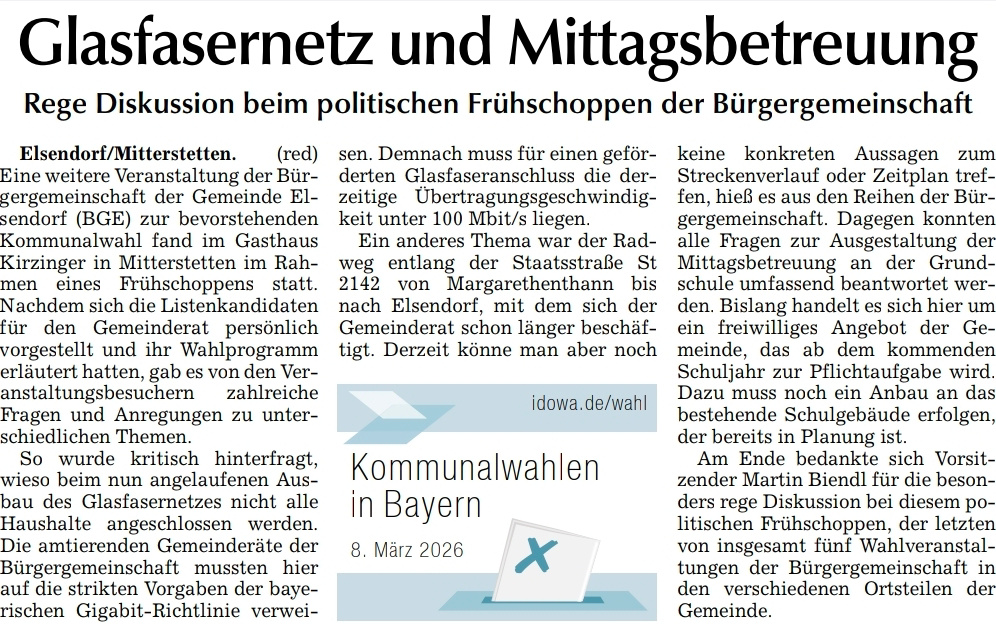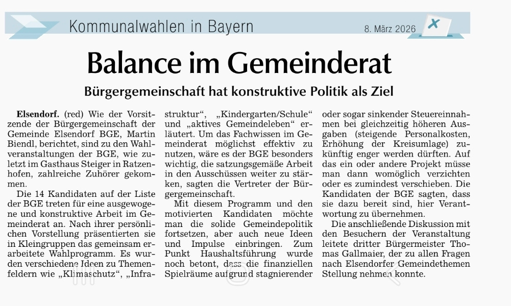 Willkommen bei der Bürgergemeinschaft der Gemeinde Elsendorf